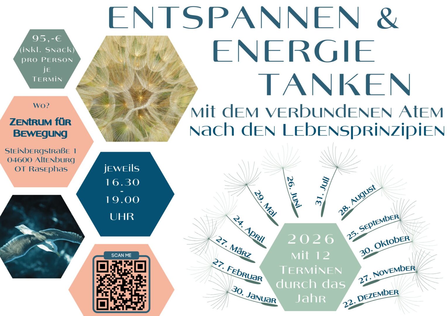 In einer Kleingruppe von maximal 10 Menschen kannst du dich auf eine Reise zu dir selbst begeben. Mit jedem Atemzug darfst du alte Muster loslassen, Blockaden und Anspannung loslassen und zugleich Körper, Geist und Seele neue Energie zuführen. Probier es gern aus und gönn dir deine Auszeit vom Alltag.